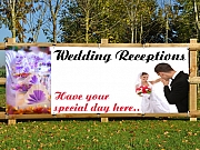 A Wedding Show banner might typically use some wedding imagery along with the date and times of when a Wedding Fayre is taking place. These events often owe their popularity to word-of-mouth local marketing so it’s important to consider Wedding Banners.