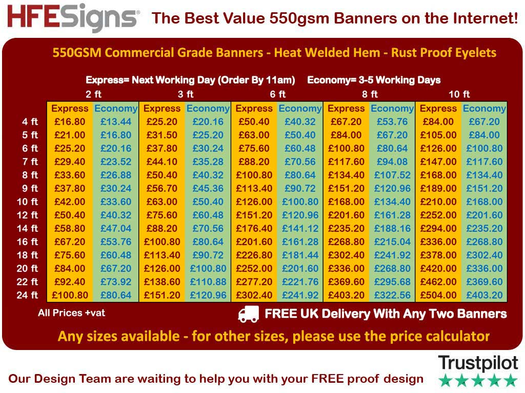 If your banner is needed same day, we can do this if you are able to collect from DE13 9PD at 4pm. This would be a special arrangement and you will need to arrange this with the design team, we will need your artwork by 11am that day.