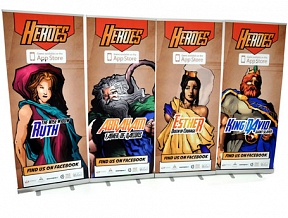 Every roller banner (also called a roll up banner, pull up banner or retractable banner) is printed in-house on premium anti-curl, light-block, wipe-clean material using durable UV curable inks. The result: a professional banner that stays flat, stays vivid, and looks brilliant every time you roll it out.