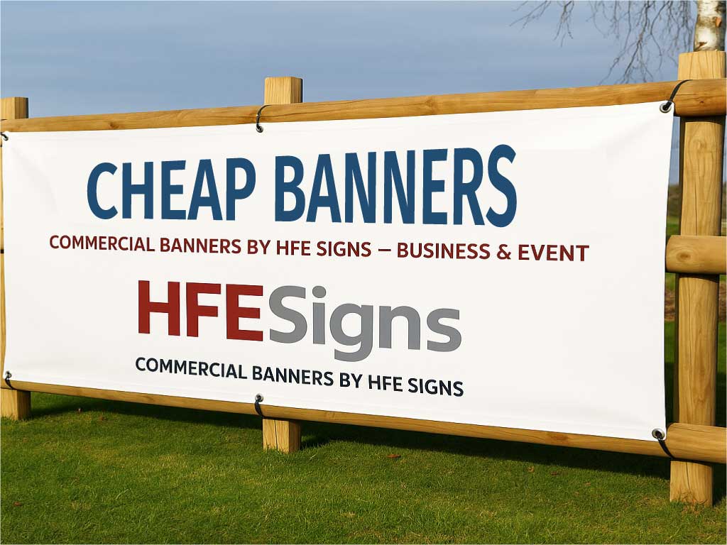 If you’re looking for cheap PVC banners, affordable printed banners, or low-cost custom banner printing, HFE Signs is your trusted UK print partner.