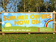 The sky’s the limit when it comes to holiday promotions, so let your imagination run wild and we will design something just for you without costing you a penny extra. At HFE Signs PVC banner design is included in the cost of your banner, so if you’re promoting a campsite, caravan park or a family holiday centre, we’re 100% confident we can design something eye-catching to tick the boxes for you. Allow our experienced designers to use their creative skills and design something bespoke, just for you based on your banner design brief. Alternatively you can design online yourself by utilising our exclusive online designer.