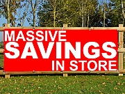 Do you need grab peoples attention? Do you need a eye-cathing sale PVC banner? We have the PVC banner for you! PVC banners are an affordable way to promote your sales. Take a look at all our sales PVC banners, if you cant find what you need, we can design the perfect sales PVC banner for you free of charge.