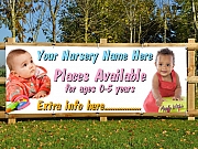 We have a great range of nursery related PVC banners. There bright and eye-catching which is just what you need to grab passing traffics attention. We have designed these nursery PVC banners with children in mind so they should fit in perfect with your nursery’s environment. All our PVC banners can be edited to make them personal and relevant to your nursery.