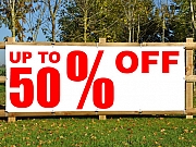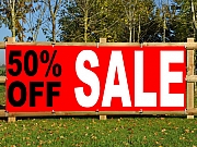 Do you need grab peoples attention? Do you need a eye-cathing sale PVC banner? We have the PVC banner for you! PVC banners are an affordable way to promote your sales. Take a look at all our sales PVC banners, if you cant find what you need, we can design the perfect sales PVC banner for you free of charge.