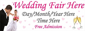 A Wedding Show banner might typically use some wedding imagery along with the date and times of when a Wedding Fayre is taking place. These events often owe their popularity to word-of-mouth local marketing so it’s important to consider Wedding Banners.
